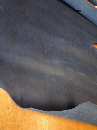 Krásna hovädzia koža crazy modrá, je bledšia ako na foto. Koža je v polkách, veľkosti sú 2,04 m2 a 1,39 m2. Hrúbka kože je 1,5-1,6 mm.